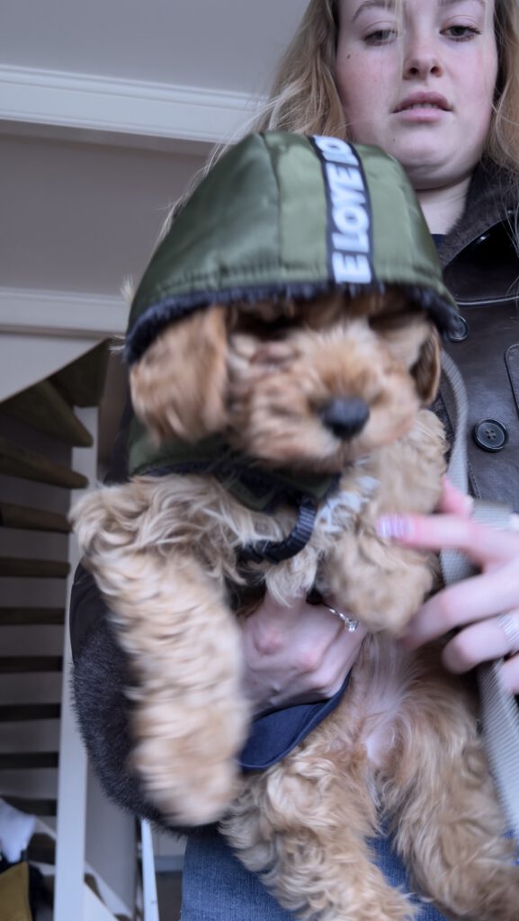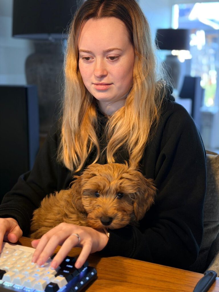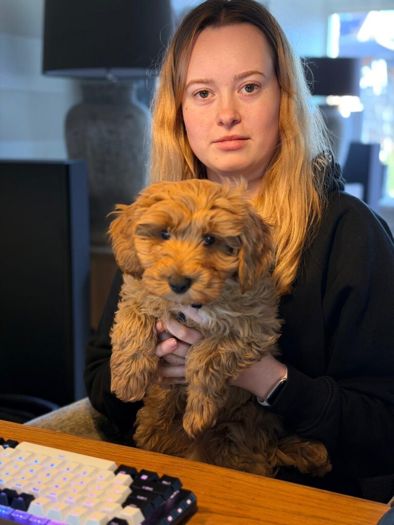 Geboren in October 2025 in Oostzaan. Kruising toy poedel en tibitaanse terrier. Bonk energie en zeer slim.